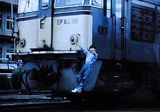 パンタを降ろしたロクサン20号機(97年10月 横川運転区)