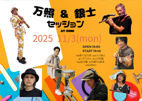 11/3(月)万照&銀士セッション open19:00 start19:45 ¥4,950 sax野々田万照 sax小川銀士 gじぞうさん key鈴木賢 b山内和義 dr河崎”Fire”真澄 voNORIKO