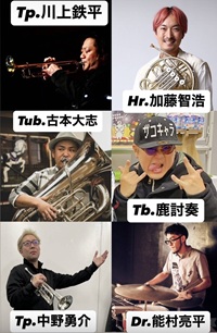 11/10(月)センターフィールド open18:45 start19:30 ¥4,400 tp中野勇介 tp川上鉄平 tb鹿討奏 hr加藤智浩tub古本太志 dr野村亮平