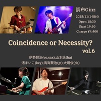 11/14(金)Coincidence or Necessity?Vol.6 vo,sax伊勢賢治 b山本詠 kry渚まい子 g鳴海賢治 dr大場俊