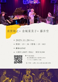 11/20(木)須賀裕之×金城菜美子×藤井空 open19:00 start19:30 ¥3,300 トロンボーン須賀裕之 ユーフォニアム金城菜美子 トランペット、ピアノ藤井空