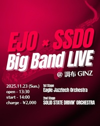 11/23(日)EJO×SSDO Big Band LIVE open13:30 start14:00 ¥2,000+ドリンク 1st Eagle Jazztech Orchestra 2nd SOLID STATE GROOVIN' ORCHESTRA