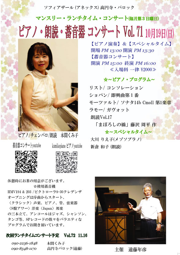 ピアノ 本間くみ子/蓄音機:遠藤年彦