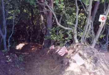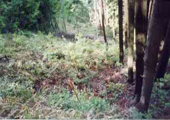 急な斜面に、ブナの苗木が植えられている。 その苗木には、立て札が付けられている。 |