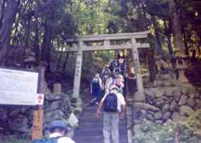 和泉葛城山の山頂へ。 鳥居をくぐり、最後の長目のの階段へ。 今回のコースは、登りはここまで。 山頂で長目の休憩を取る。 |