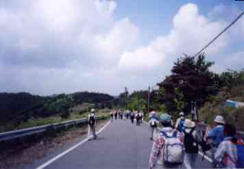 紀泉高原の道を、右側は、大阪の泉南から関西空港も一望しなが、左側は、和歌山から紀伊半島山並みを見ながら歩く。 |
