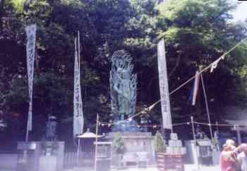 山の谷間の犬鳴不動尊。 狭い谷合いに線香の香りと、木々の間からこぼれる日差しと相まってとても面もちのある所である。 |
