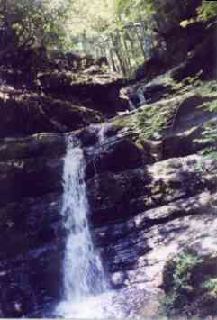「両界の滝」、 小さな沢だったのが、大きな滝となってきている。 水量も多く、段々川幅も大きくなっていく。 |