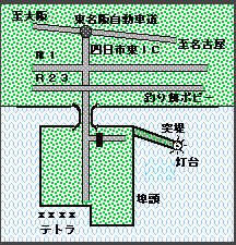 場所は図中の突堤である。水深は大潮の干潮でも4メートルはある。