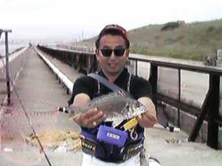 桟橋でキビレを上げられた。きょうはキビレの様子を見に来られたとの事。