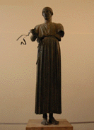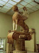 右手の部屋に入るとアルカイック期のスフィンクスの像が現れれる。頭は女性、体は前の部分が鷲、後ろの部分が獅子。そして、反対側の奥にある「ブロンズの御者の像」がこの博物館で1番有名なものだ。クラッシク期につくられた像はギリシア彫刻のなかでも屈指の傑作らしい。