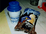 こんな土産はいかが?ネスカフェのインスタントアイスコーヒー。冷水をカップに入れ振ると、泡がたったアイスコーヒーの出来上がり。このアイスコーヒーの巨大広告をアテネ近辺でよく見かけた。ドライブインやキオスク、スーパーマーケットなどで売っていた。