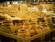 入場料Dr.1,200。紀元前15世紀ごろの大噴火でやられた、ミノア文明が栄えた都市の跡と考えられる。現在まだ多くの家が未発掘のまま土中に眠っているそう。現在も発掘調査が続いており、発掘を終えた部分が公開されている。ちょうど私たちがこの遺跡を訪れたとき、ツアーで来ていた人の英語の説明が聞くことができた。遺跡は風化を防ぐためほとんど屋内で、直射日光を浴びないので、まだ見学しやすかった。30分ほどで見ることができた。