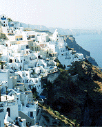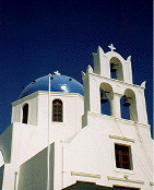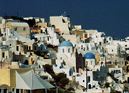アクロティリ遺跡から直接イアの町へ行くバスはなく、一旦フィラまでもどって、イアまで行かなければならない。(フィラからイアまでDr.270)よくポストカードで見る青いドーム型の教会があちこちにある。サントリーニ島は風が強く、(だいたい風車があったところというのは風が強いのだが)青のドーム型の屋根の上も砂をかぶっている。通りには、アクセサリーショップや土産物屋、カフェが並ぶ。そのあたりをぶらぶらし、時間を潰す。イアの町はフィラよりかなり静かな町であり、私が今回の旅行で一番気に行ったところである。