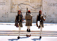 像や、陶器、壷などの展示ばかりで、歴史っていうか、ギリシャ神話を勉強しておかなきゃあまりおもしろくない。'99年4〜6月放送のNHK教育テレビ「私のギリシャ神話」(講師 阿刀田高)でみっちり勉強したつもりでもそれほど感動がなかった。強いて言えば、私たちが訪れたサントリーニ島のアクロティリ遺跡で発見された壁画が展示されている 部屋が良かったかなあ。やっぱり絵のほうがわかりやすい。