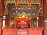 写真上段右は、韓国の宮殿によくある月、日、それに5つの山が書かれている絵。