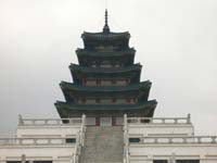 景福宮(入場料3000W)は、太祖が1392年朝鮮を建国し、太祖4年(1935年)に創建した朝鮮の正宮である。1592年の文禄の役(壬辰倭乱)で大部分が焼失した。現在も修復作業が続いている。ツアー途中に、ある女性が閔妃(ミンピ)について、案内係に聞いていた。そうか閔妃が暗殺されたところか。帰ってから、パンフレットを見ると、明成皇后遭難地と記されてあった。次回は是非訪れたい。