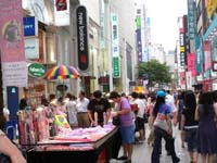ここもソウルらしい雰囲気を醸し出していますね。私たちがソウルに着いたときは、夕方で、ホテルに行くのに、スーツケースを転がしていたわけだが、これからオープンする屋台の列と遭遇してしまいました。屋台は、食べ物から、靴下、アクセサリー、日本人向けにか韓流グッズも売っている。