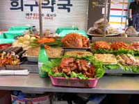 南大門市場は、いろんなものが売られている。時間が無かったので、駆け足で回ったので堪能できなかった。取りあえず、売り込み合戦がすごい。Mちゃんは手を捕まれていた。