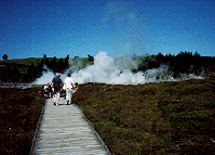 一番の見所は、クレーター・オブ・ザ・ムーンだろう。地熱地帯の月面クレーター状になったところ、ここで、50分をとってくれるので、1周出来る。