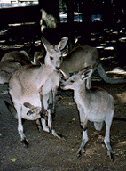 ショーとショーの合間をぬって、カンガルーに餌(A$1)をやるに行くが、遅い時間帯だったので、もうカンガルーはお腹いっぱいのようだった。餌を口元に持っていっても、無視された。可愛げのないカンガルーだ。子供のカンガルーがお腹の中から出たり、入ったりするシーンを見れた。ここ動物園には、別のところに白い カンガルーがいる。まるで、山羊のようだった。