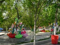 ウルムチの中心地にある庶民の憩いの場。鎮龍塔は、たびたび氾濫したウルムチ河の龍を鎮めるため(中国では洪水は龍が暴れることによって起こると信じられていた)に建てられたのだそう。