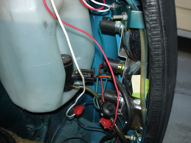 緑の配線がストップの+です。あとはアースへ。